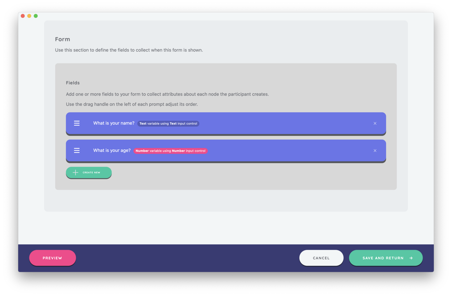 Use this Interface as a simple way to collect attribute data on each participant in your study.