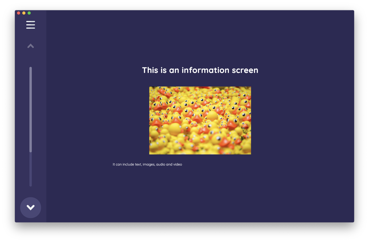 The Information Interface is a general purpose screen that can be used to present information to participants using a variety of text and media resources. For example, this screen can be useful to introduce a study or to provide instructions or context for a particular stage in the survey.